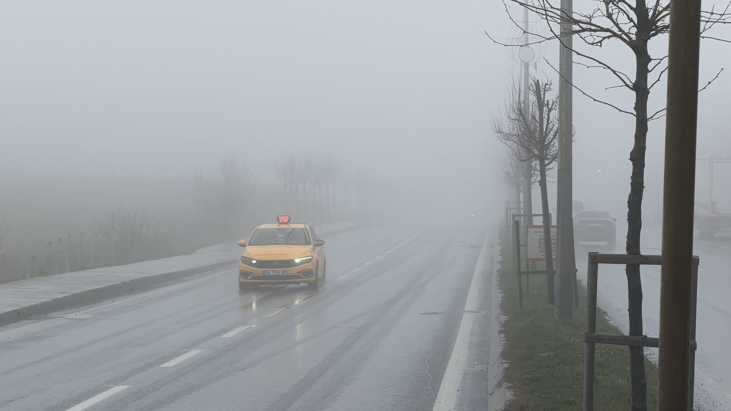 Yoğun sis nedeniyle araçların yavaş ilerlediği görülürken, sürücüler kontrollü şekilde seyretmek zorunda kaldı. Özellikle havalimanı yolu ve çevresinde sisin etkisini sürdürdüğü öğrenildi.